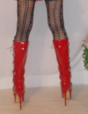 10" Heel Red Platform Lace-Up Thigh High Boots*