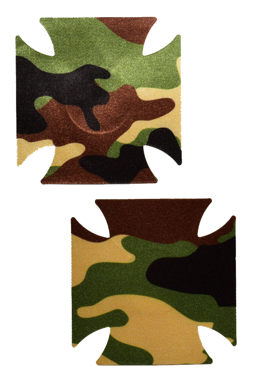 Double Cross Camouflage Nipple Pasties. Feature self adhesive tape, just peel and stick on clean, dry, oil-free skin.