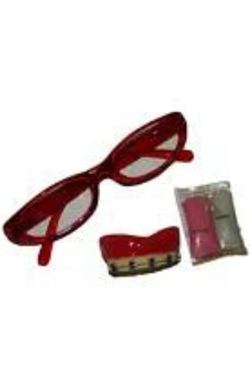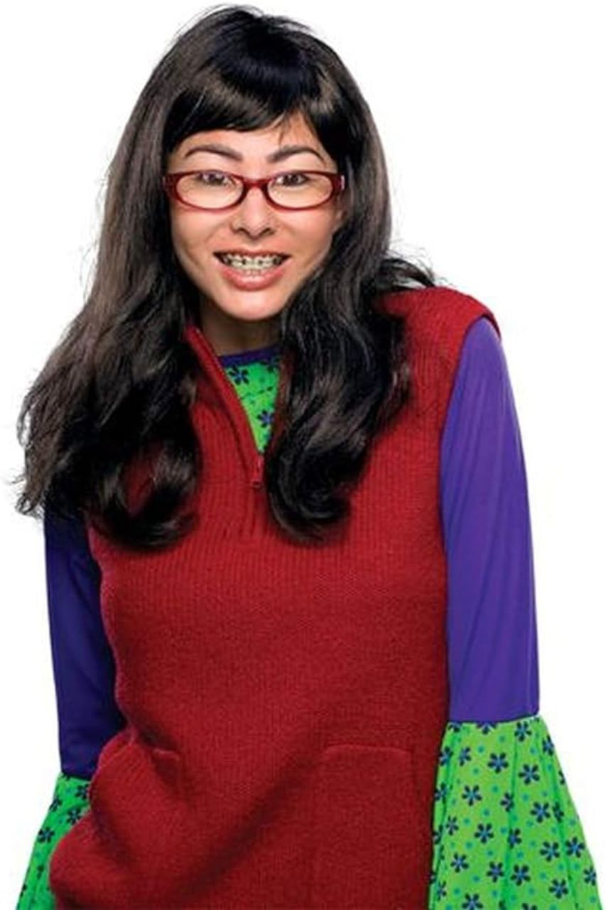This set comes with a dark-haired wig, eyeglasses, fake braces, and holding compound. It's made of 100% synthetic materials and should be hand washed in cold water. Give the wig a good shake and fluff to get the best look before using.