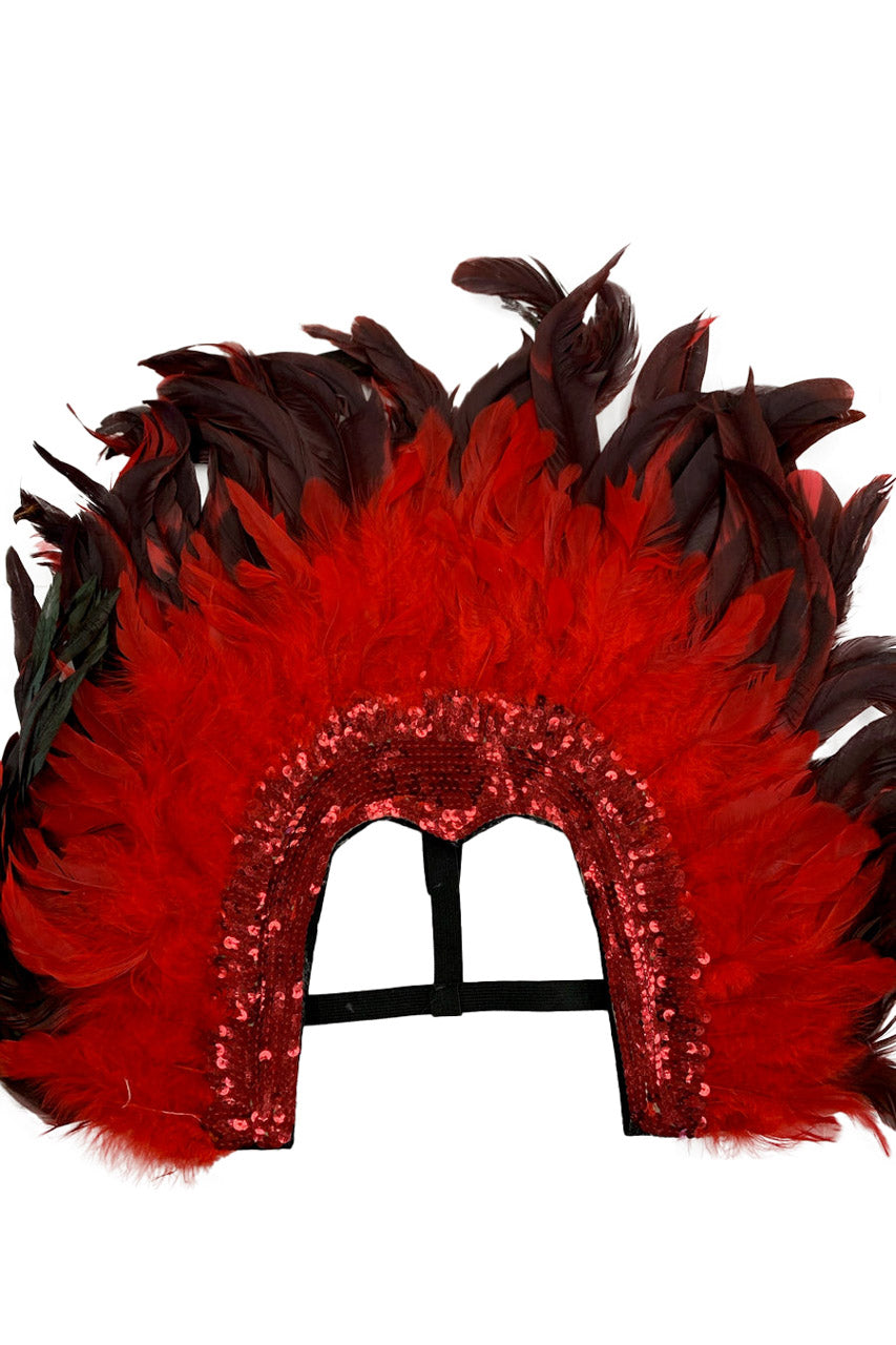 Get ready to party in style with our Large Red/Black Feathered Headpiece! This will add a touch of elegance and mystery to any outfit. Let the colorful feathers and intricate design make you stand out in the crowd. Perfect for a night of fun and revelry.