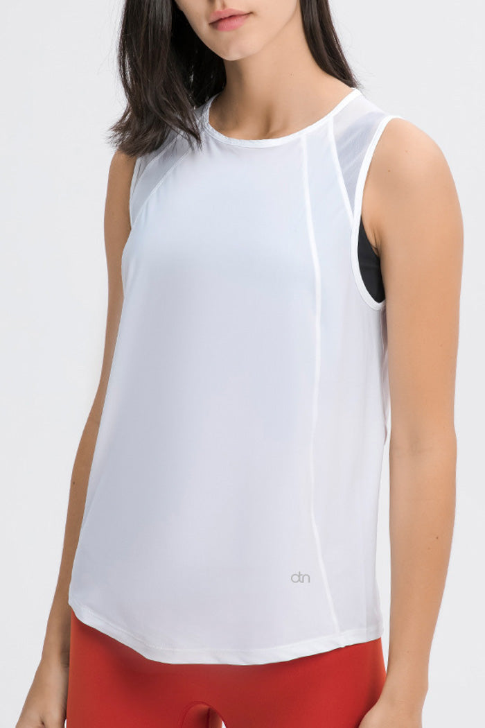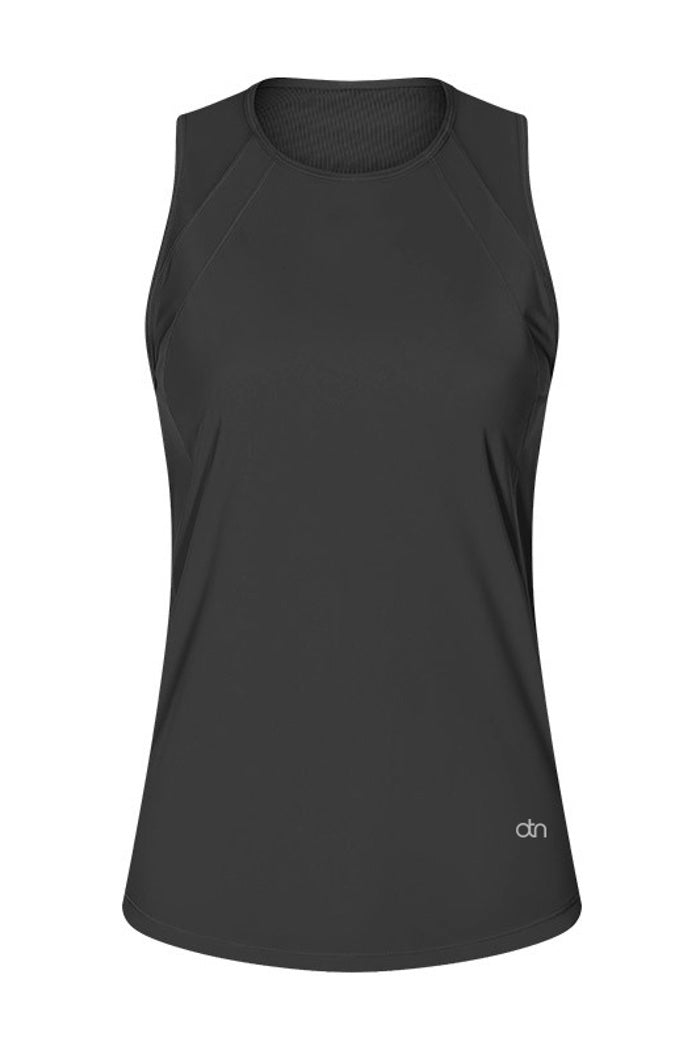 The standout feature of this tank is the innovative back vent. This strategically placed mesh panel not only adds a cool, modern twist but also ensures maximum breathability, keeping you cool and collected during even the most heated rallies. The high neckline and relaxed fit offer a flattering silhouette that moves with you, providing ultimate comfort and style.