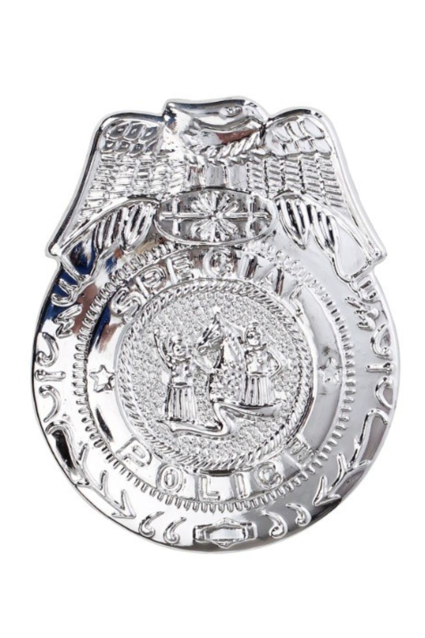 Make a bold statement with this silver badge featuring an eagle on top and the words "Special Police" encircling the center. It's the perfect accessory to complete any cop costume!
